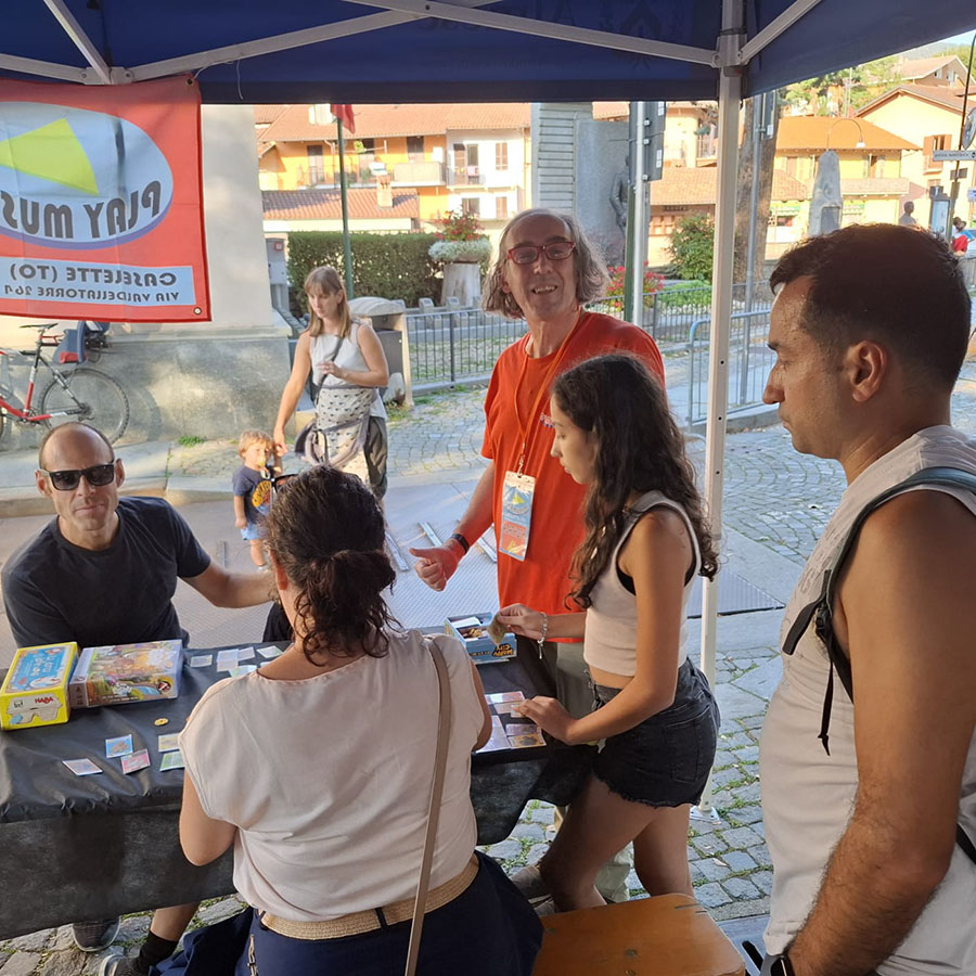 In piazza erano presenti tavoli dedicati a giochi per tutte le età: dai party game veloci ai classici moderni. Numerosi giochi in legno, gli scacchi giganti e un torneo di calcio balilla. I volontari di Play Musinè hanno spiegato i regolamenti e coinvolto famiglie, bambini, giovani e adulti.